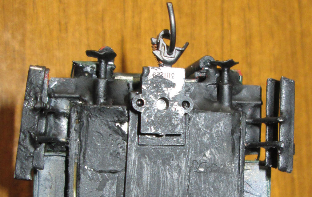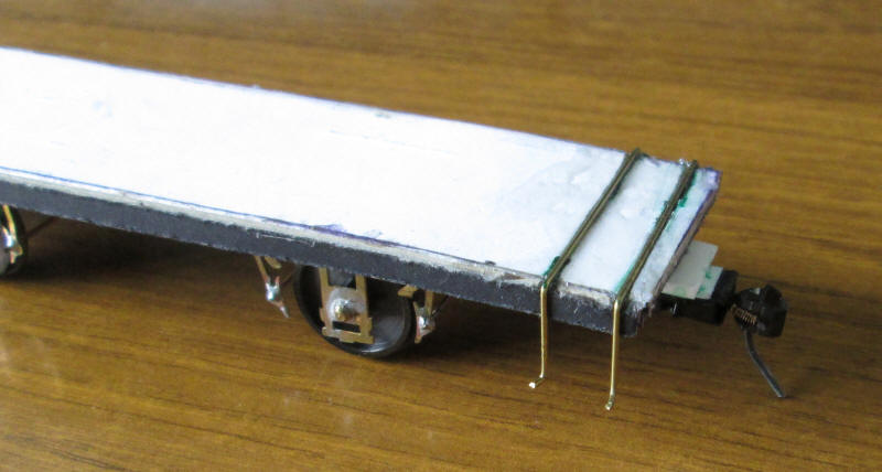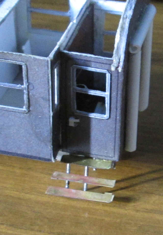 The handrails were cut from nickel silver wire bent and threaded through holes drilled in body recesses near the doors.