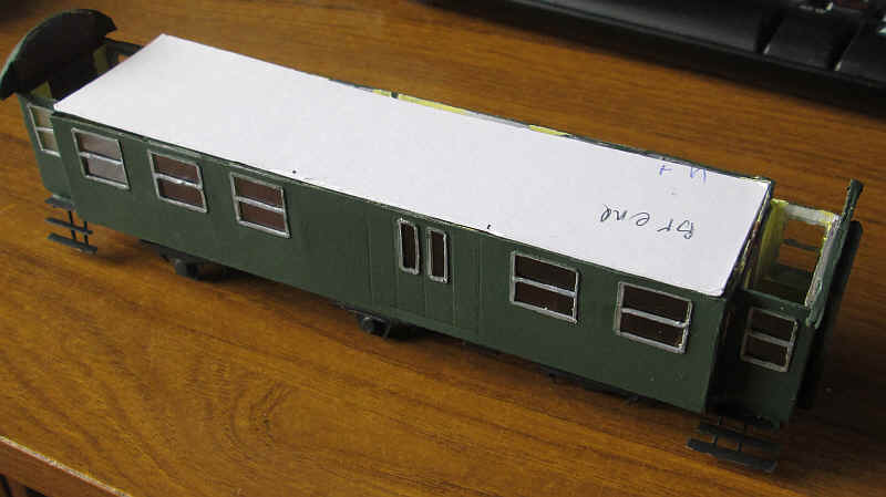 The two units were now glued together and fastened to the main body of the coach using the tabs by the side of the doors.