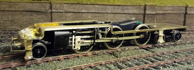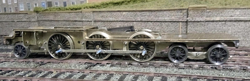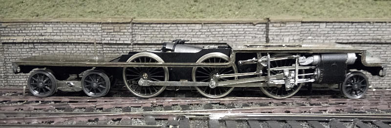 As can be seen in photo the footplate is complete and the basic chassis now rolls freely around the layout. The cylinder unit will need to be split as in my other LMS 2-8-0s and 4-6-0s to give sufficient clearance behind the slidebars and crossheads.