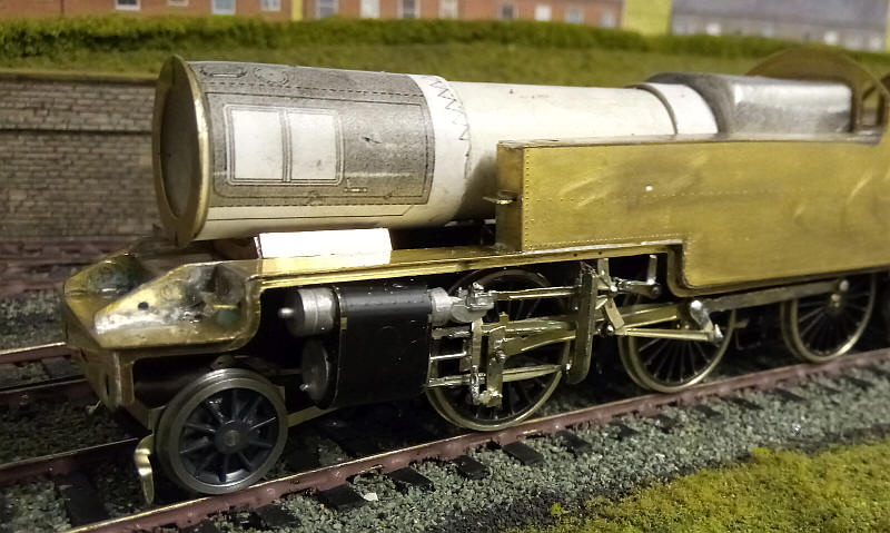 My original plan had been to use a cardboard wrapper for the central section of the boiler but included in the etches was a flat sheet of brass for the boiler. I decided to roll it to shape to see how well it fitted. To my amazement it was a perfect fit butting up gainst the firebox and the smokebox wrapper exactly. Since I hadn't done any precise measurements this was a real bonus!