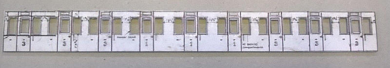 The corridor coaches were treated in exactly the same way. The frosted glazing in the toilet windows were represented by filing the rear of the glazing to craze the surface.