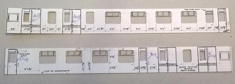 The photo above shows the completed side. The sides were printed out on thin card and the full sized door window openings cut out. Then a strip of printer paper was glued behind the window area. The compartment and door droplight windows were then cut out.
