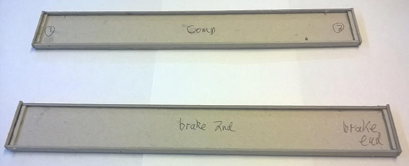 Attention now turned to the underframe of the carriages. These will be made in a similar way to the metal bodied carriages using card and plastic.