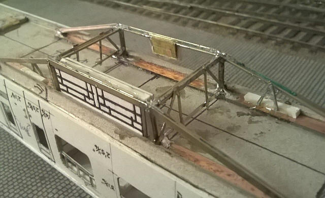 The two metal carriages come with an etched brass roof which have already been curved to the correct profile. I decide to use this as a former.