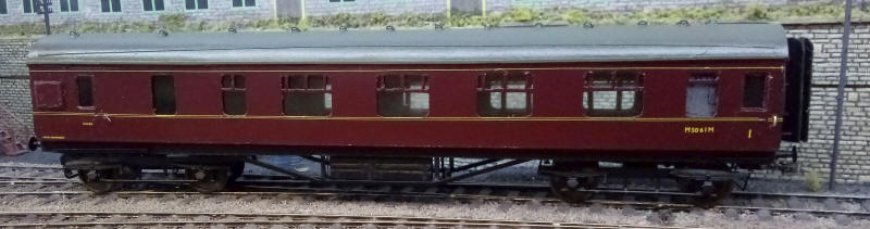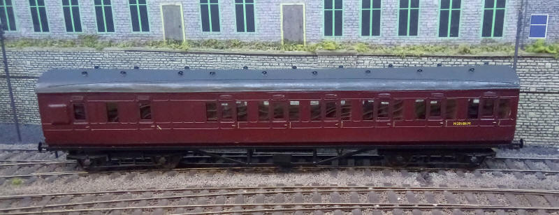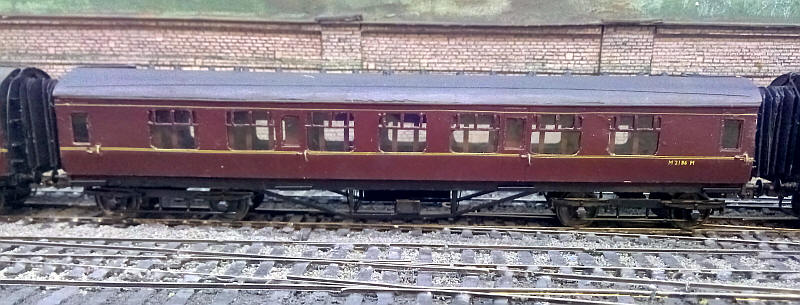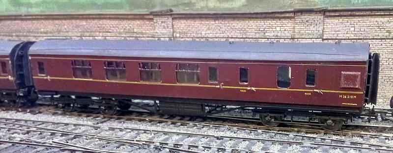 Obviously, there is still a lot of work to do to finish the models, the first step being to spray the body sides with BR maroon using Railmatch spray cans. Then HMRS Pressfix lining transfers were applied and sealed with several coats of satin varnish. The numbers are Fox transfers with the correct numbers made by cutting up sections of their BR Mark 1 coach number transfers.