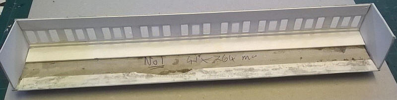 The subfloor, which will be glued to the internal coach floor, is 265mm by 34mm. This gives a ledge 2mm wide on either side when glued to the internal floor.