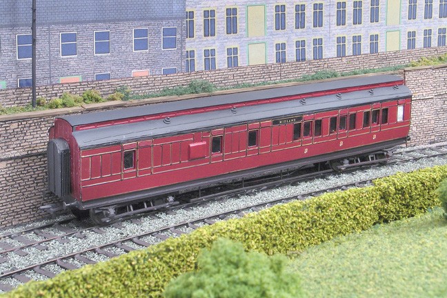 Although I've built several square panelled Midland Railway carriages from cardboard with plastic strips representing the beading, I've decided to use metal sides for the round panelled stock. There are several reasons for this. The first is that I don't relish the constructional problems that cutting out a fret of thin plastic panelling entails. The second reason is the availability of etched brass carriage sides of the very prototypes I want to run on Halifax.