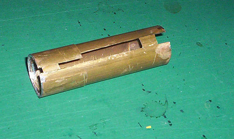 As mentioned above it was obvious that the diameter of the brass tube I'd been supplied with was too small. The solution was brutal but simple. The main boiler tube was split longitudinally and two short lengths of tube were slid inside as shown in the photo. It still wasn't quite big enough so I slipped four slivers of brass in between the short tubes and the main outer tube. As can be seen the smoke box wrapper wasn't in quite the right place when I took the photo. This had to be adjusted so that the openings at the bottom of the boiler and the smoke box coincided with each other. The boiler was the soldered together at the ends and at the interior spacing tubes.