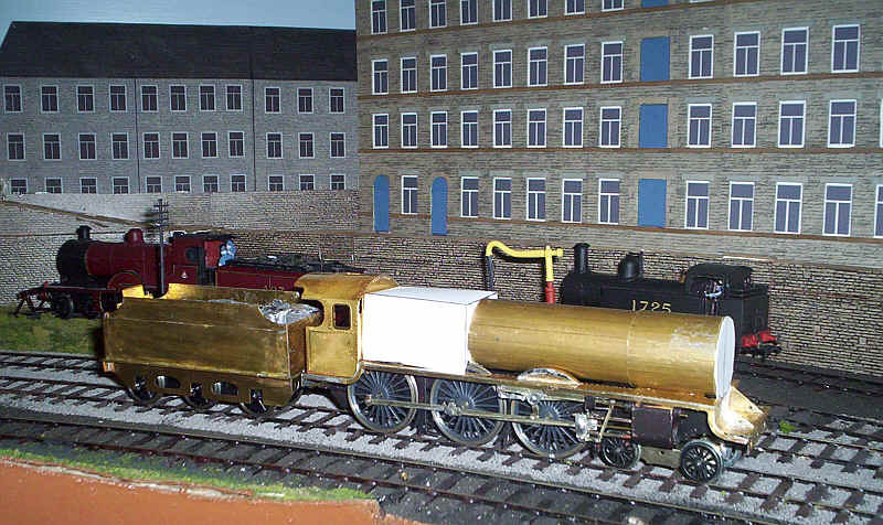 Moving on two the next stage at last it's beginning to look like a Patriot. The boiler and firebox are soldered in place and the splashers added. The cab is still loose but fits neatly.