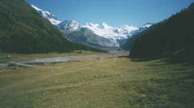 From the hotel there were views of the Piz Roseg and glacier, although not as clear as later in the week. One speciality of this valley is the horse drawn omnibus service, which is even found in the railway timetable.