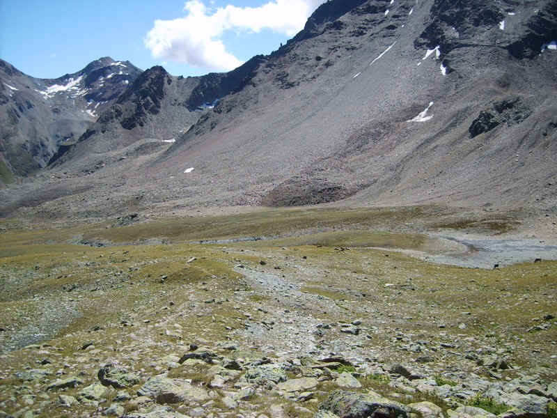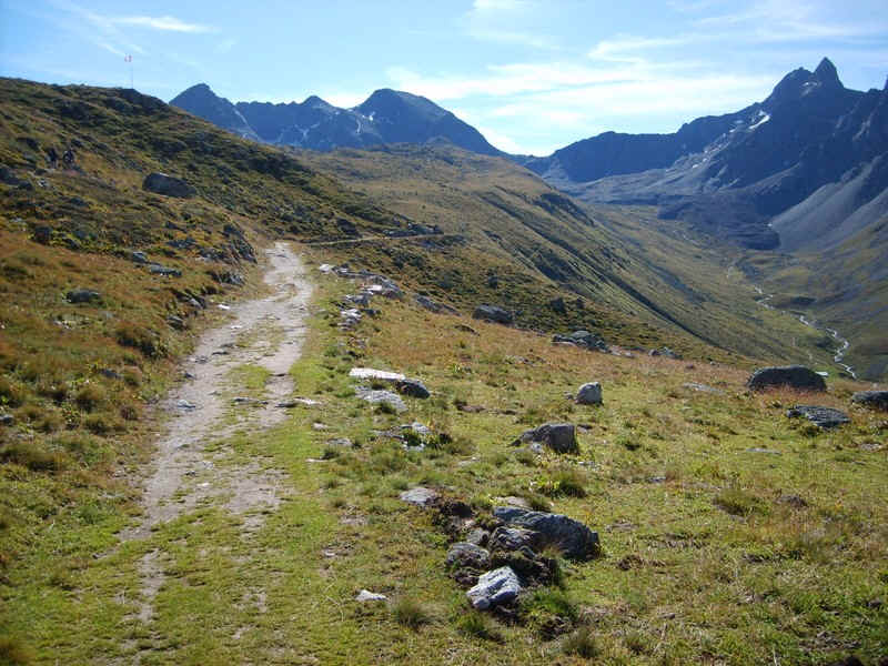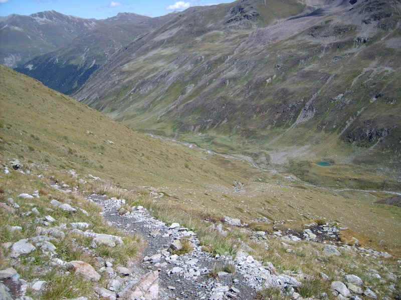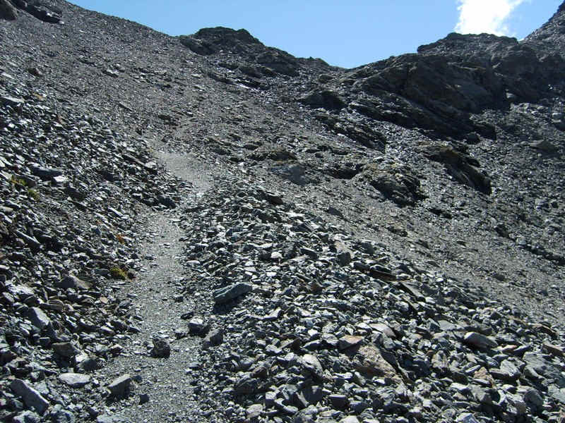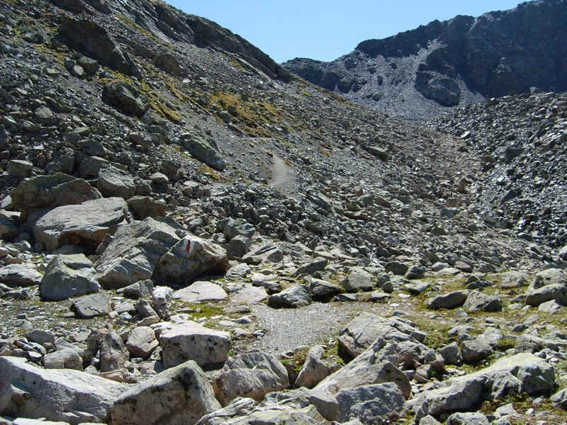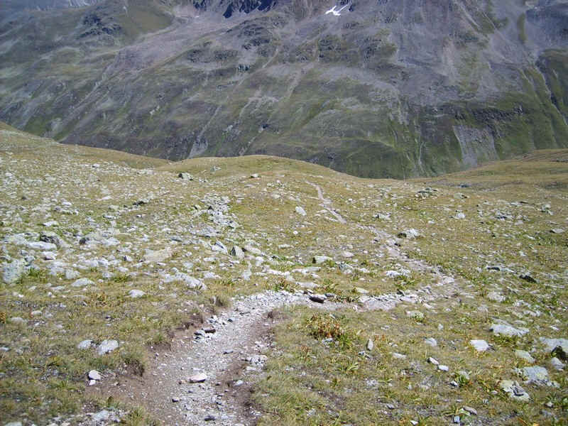 The nature of the path changes dramatically as it heads uphill from about 2715m to the pass at 2891m.
