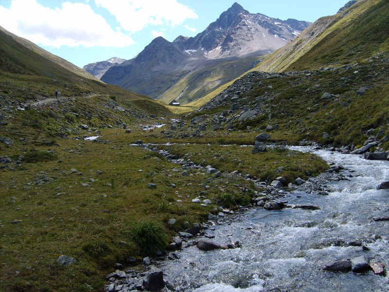 Looking back the mountains on the west side of the En (Inn) valley peep over the end of the lake.