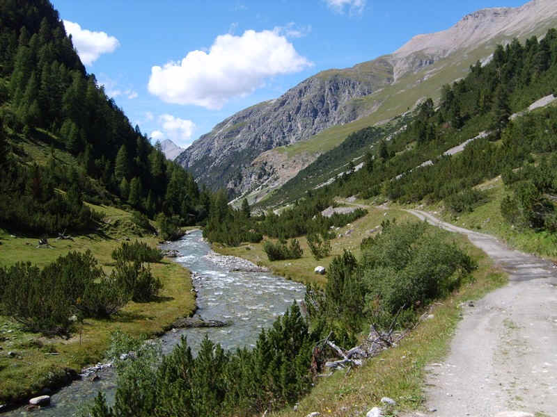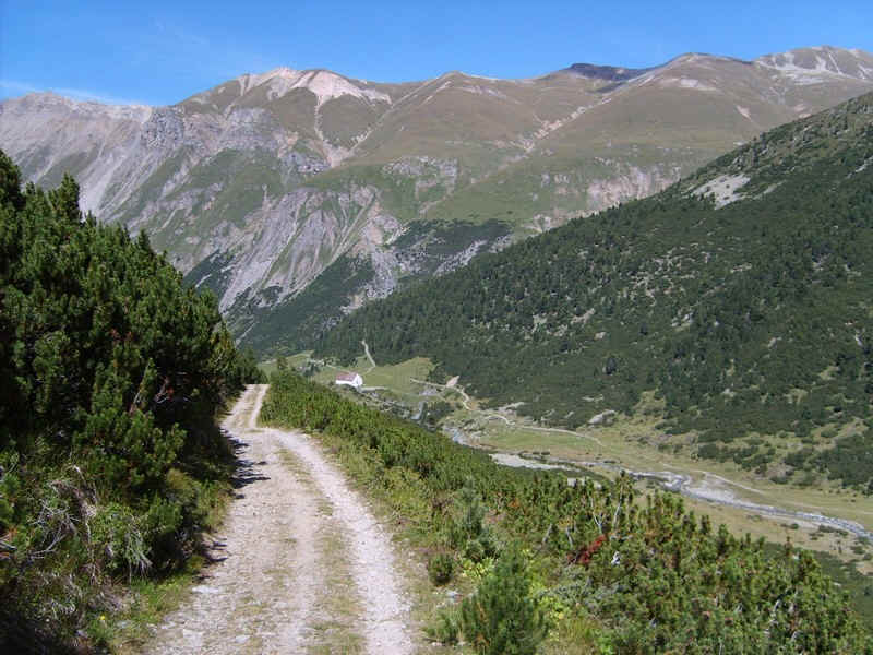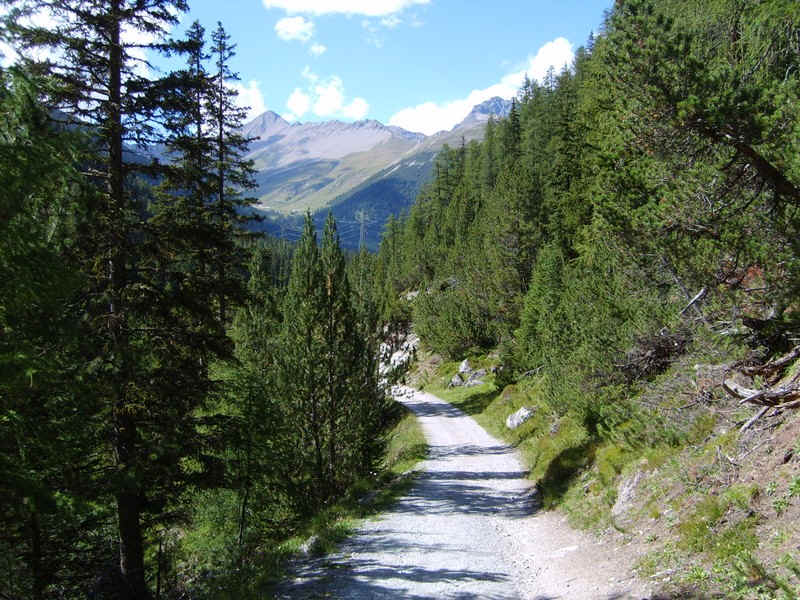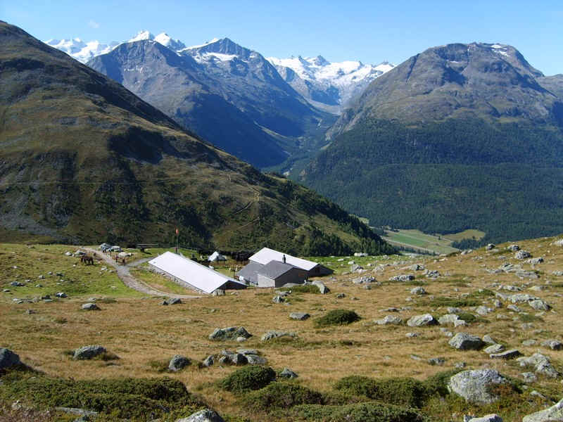 .....leading to an alm where cattle were grazing below the slopes of Piz Languard.