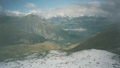 Looking down over St Moritz from above Alp Languard (note the snow)
