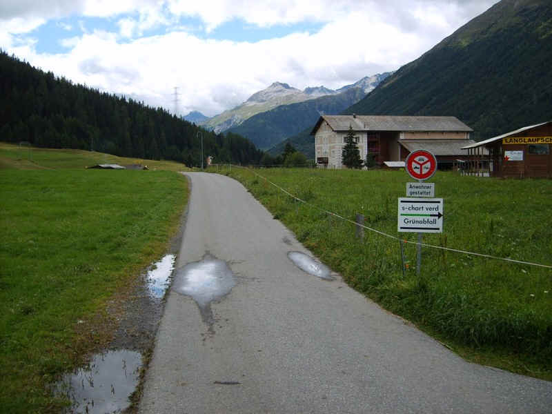 Beyond the village this track to Bever passes a restaurant (just visible to the left) so time for coffee.