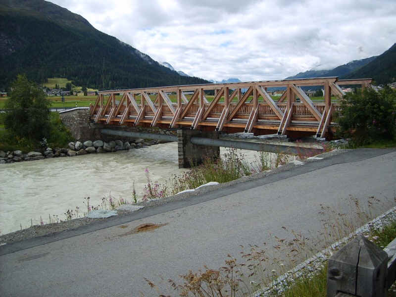 As an alternative to the higher level Via Engiadina walk from Zuoz to Bever this valley walk is quite a pleasant alternative. It's along broad paths by the River Inn and lanes through villages, meadows and woodland.