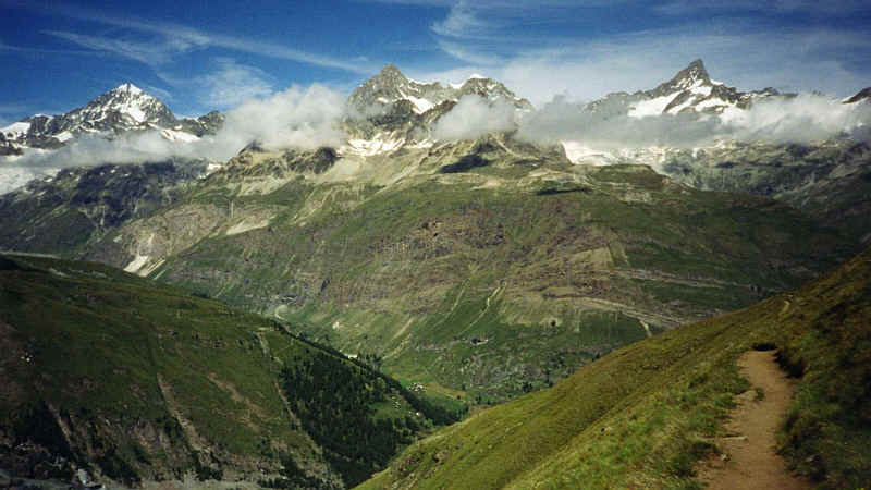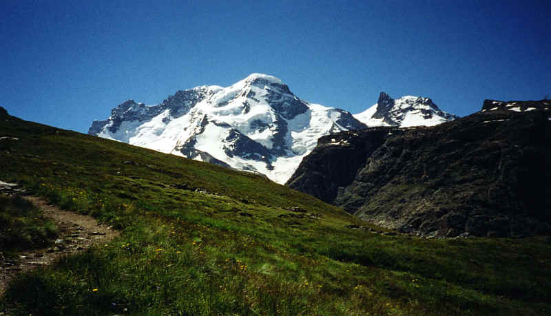The Breithorn and Kleine Matterhorn from the path above Riffelalp