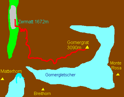 over the Gornergrat railway and up the hillside opposite the Rothorn