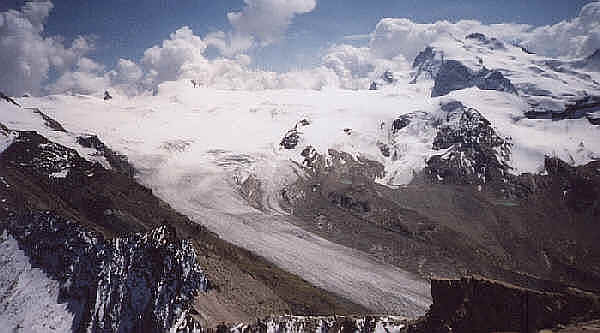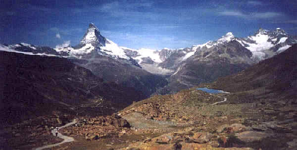 The descent proved surprisingly easy despite some quite steep sections. The grip of our new boots was most obvious. We returned to Furggli, on the way having to shout at some boys who were, unbelievably, throwing boulders down the mountain! From Furggli we climbed up the broad area cleared for skiers to the Unterrothorn (3103m). Here we found remnants of the snow from the previous week. Our descent to Zermatt was in three stages by cable car/gondola and funicular. A brilliant walk to end a super holiday!