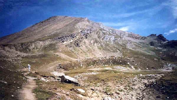 The path from Furggli along the slopes of the Oberrothorn looking back to the Unterrothorn