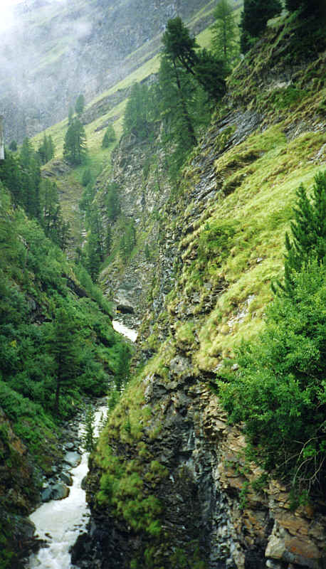 concerned. We set off in light drizzle up the valley route through Zmutt