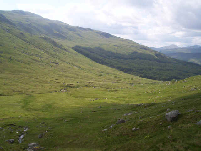 Almost down on to the vehicle track by the Ben More Burn. Then it's a couple of miles along the main road to Crianlarich - luckily there are very broad verges so there's no tarmac bashing.