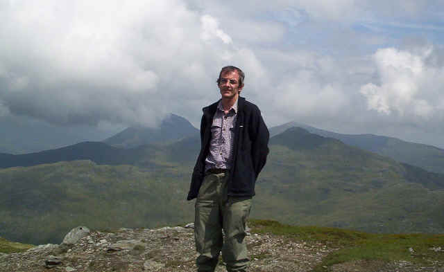This is me at the summit; Ben More is in the cloud on the left and Stob Binnien on the right.