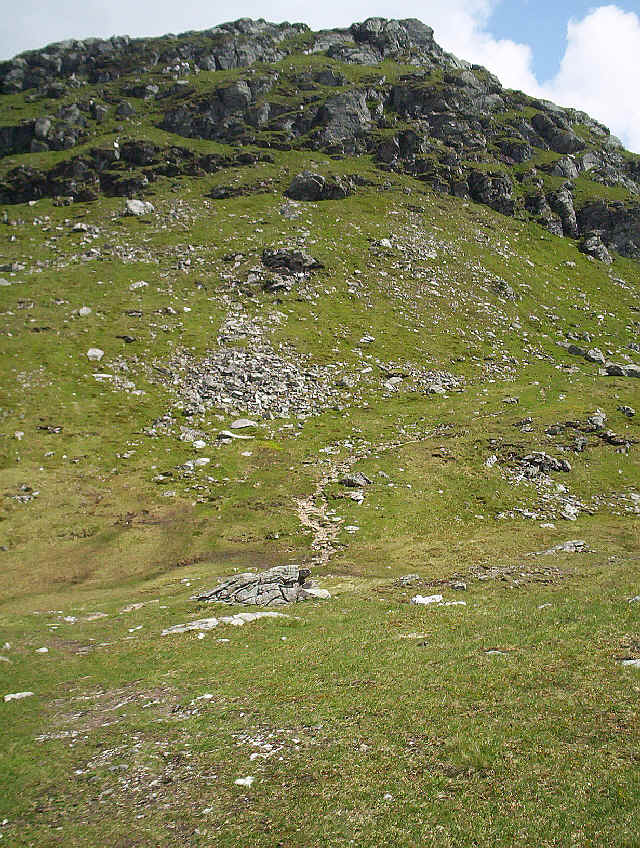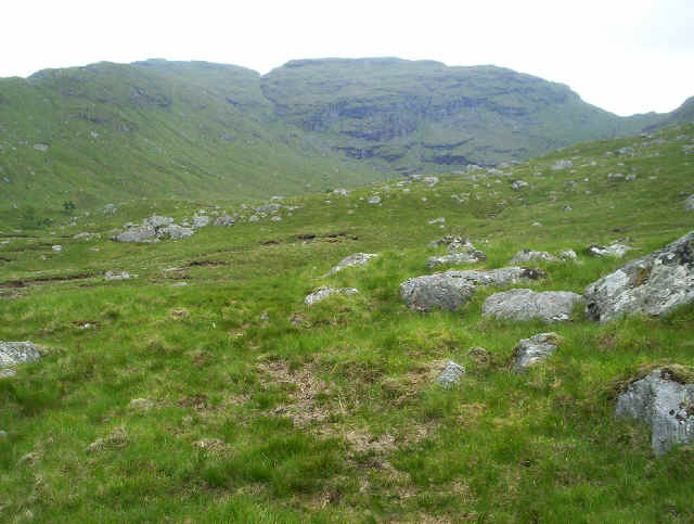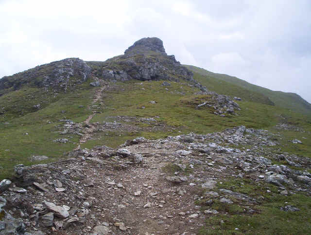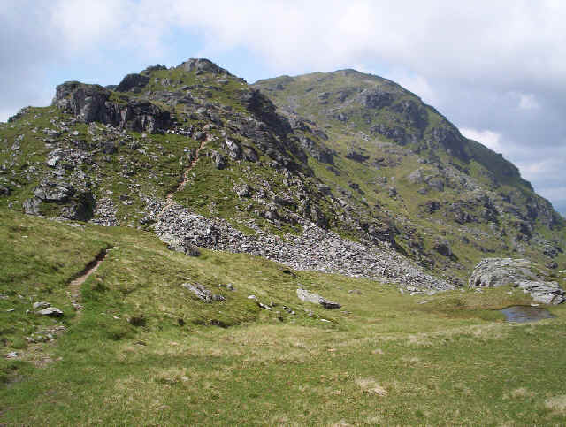Mmm... Now how am I going to get up there? The photo is taken from Bealach Buidhe and shows the path beginning to clamber up the crags of Beinn a'Chroin.
