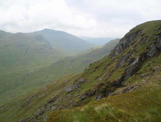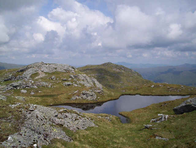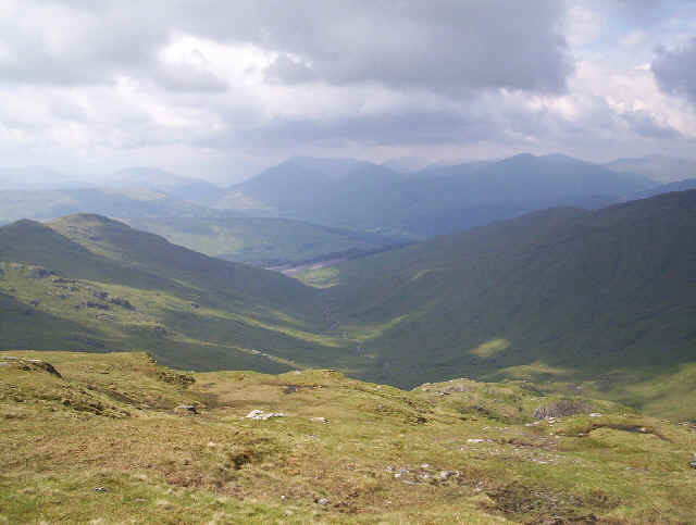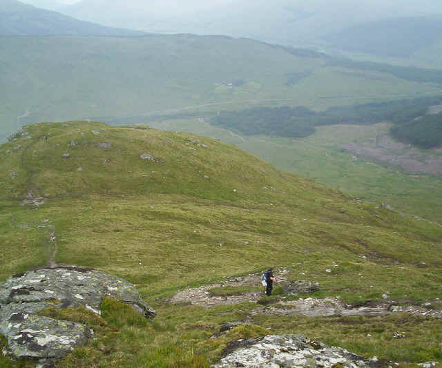 Here I'm looking downhill into Glen Falloch over the nose of Sron Garbh. The person in the photo is a lovely lady, from Stirling, who accompanied me up to the summit; nice to have a bit of company for a change.