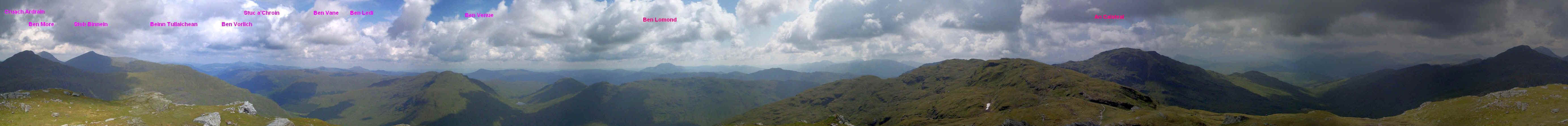 Click on the image to see the full size panorama. The image starts on the left with Ben More Stob Binnein and ends on the right back at Ben More. When the larger image appears in a new window click on it again to enlarge to full size.