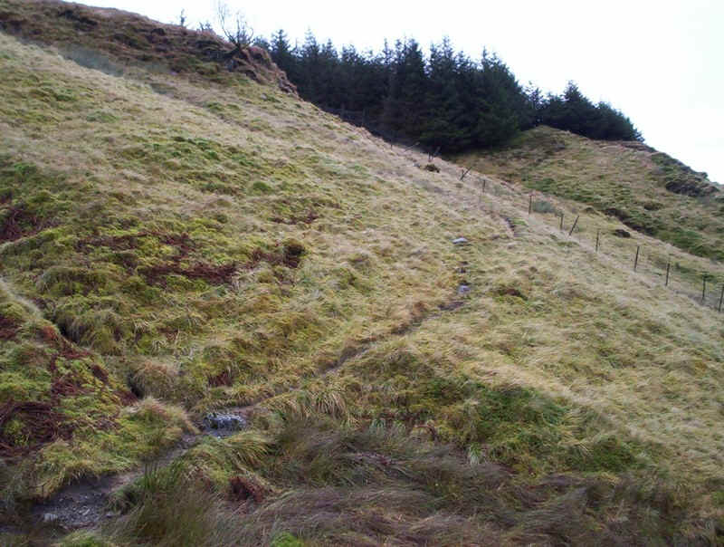 Eventually, as I cut across the hillside, I saw the path that comes up through the forest and joined this just above where it comes across the deer fence.