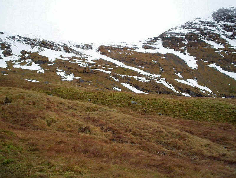 The cliffs of the north eastern ridge of Ben Lui tower above the pass.