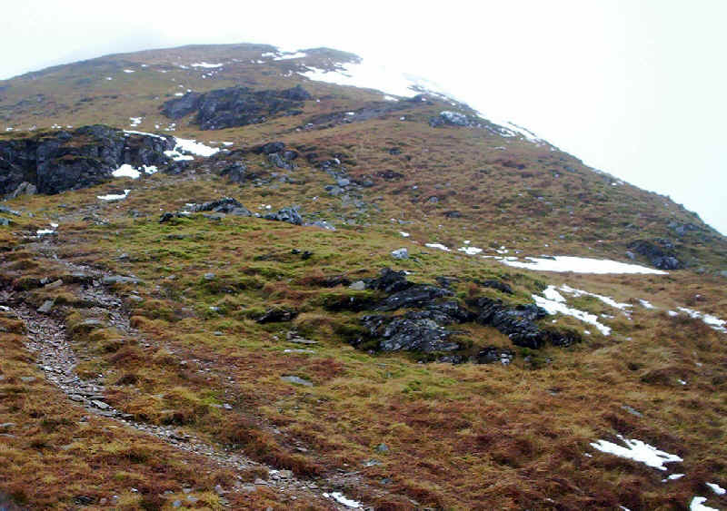 .....although it's intermittent, and leads towards this obvious pass between Ben Lui (on the left) and Beinn Chuirn (on the right).