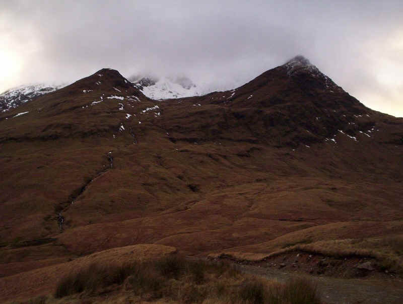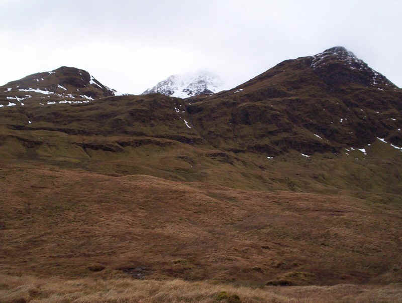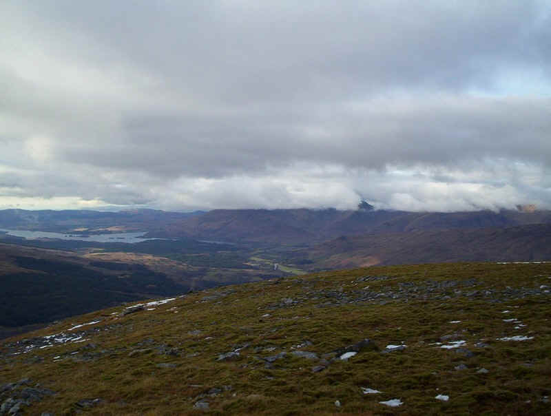 Soon Beinn Dubchraig (to the left) and Ben Oss (on the right) come into view, although the tops are still covered in cloud.