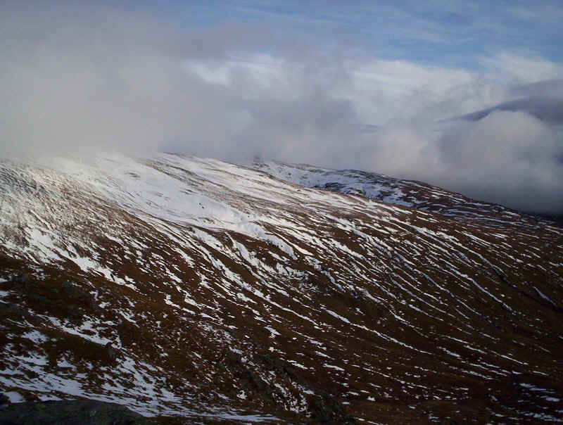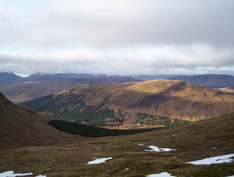 At the far end of the hill, the snow had almost disappeared. Beyond lies Loch Awe and the slopes of Ben Cruachan, just visible in the gap in the clouds. I could see out to Mull and, I think, Colonsay, so the views were far better than I'd expected earlier in the day.