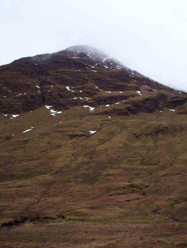 The cloud base was gradually lifting and, eventually, lifted enough to get this view of Ben Lui, on the descent.