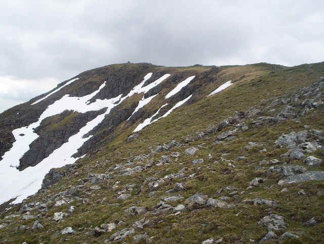 A delightful path leads onwards to the summit cairn. There's lots of snow left in early June 2008.
