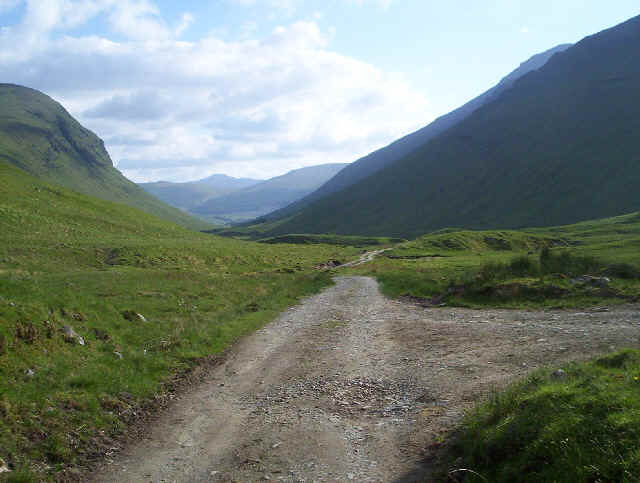 Descend into Gleann Calliche. Here I could either join the broad track that runs along the Auch Gleann and back to Tyndrum along the West Highland Way or, if time permitted, I could still climb Beinn Mhanach.