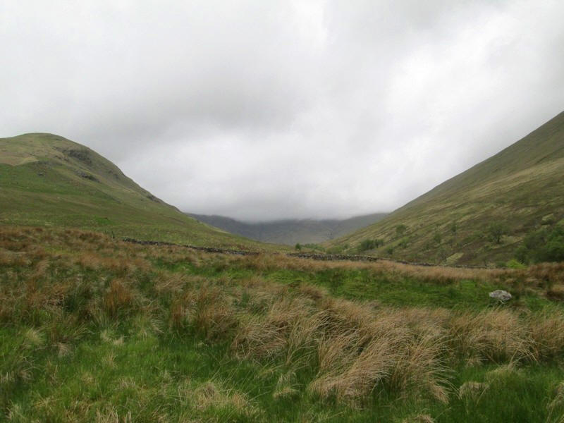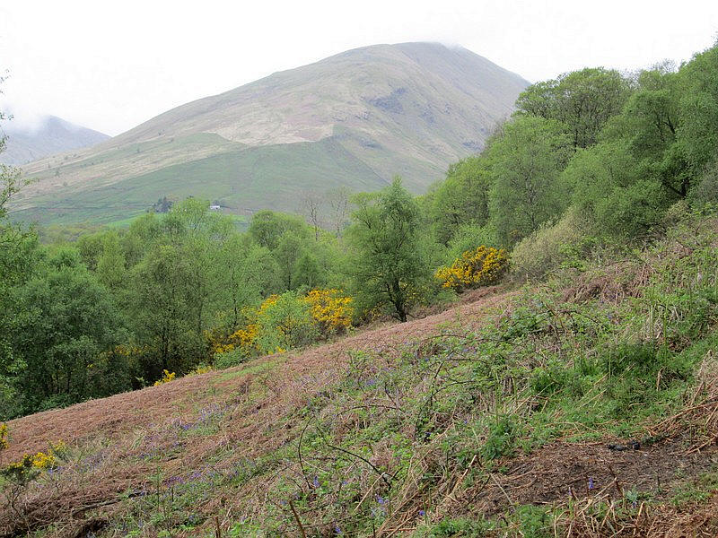 Looking up Glen Mollochan, Doune Hill (the highest of the Luss hills at 734m) is shrouded in cloud.