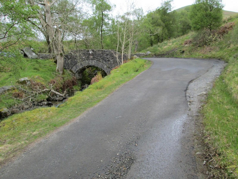 Near the farm at Glenmollochan there's a delightful bridge over the stream that comes down Glen Striddle.