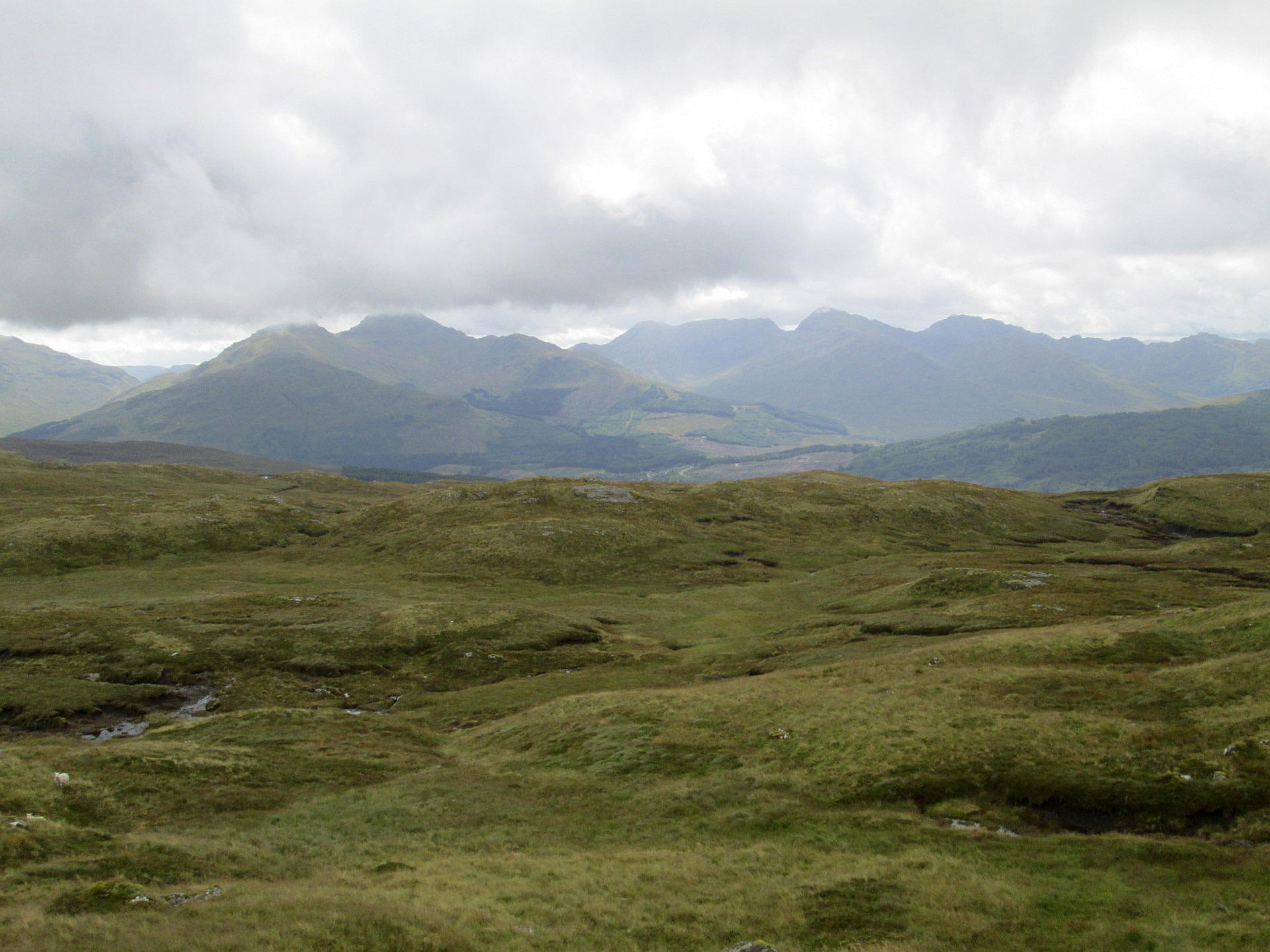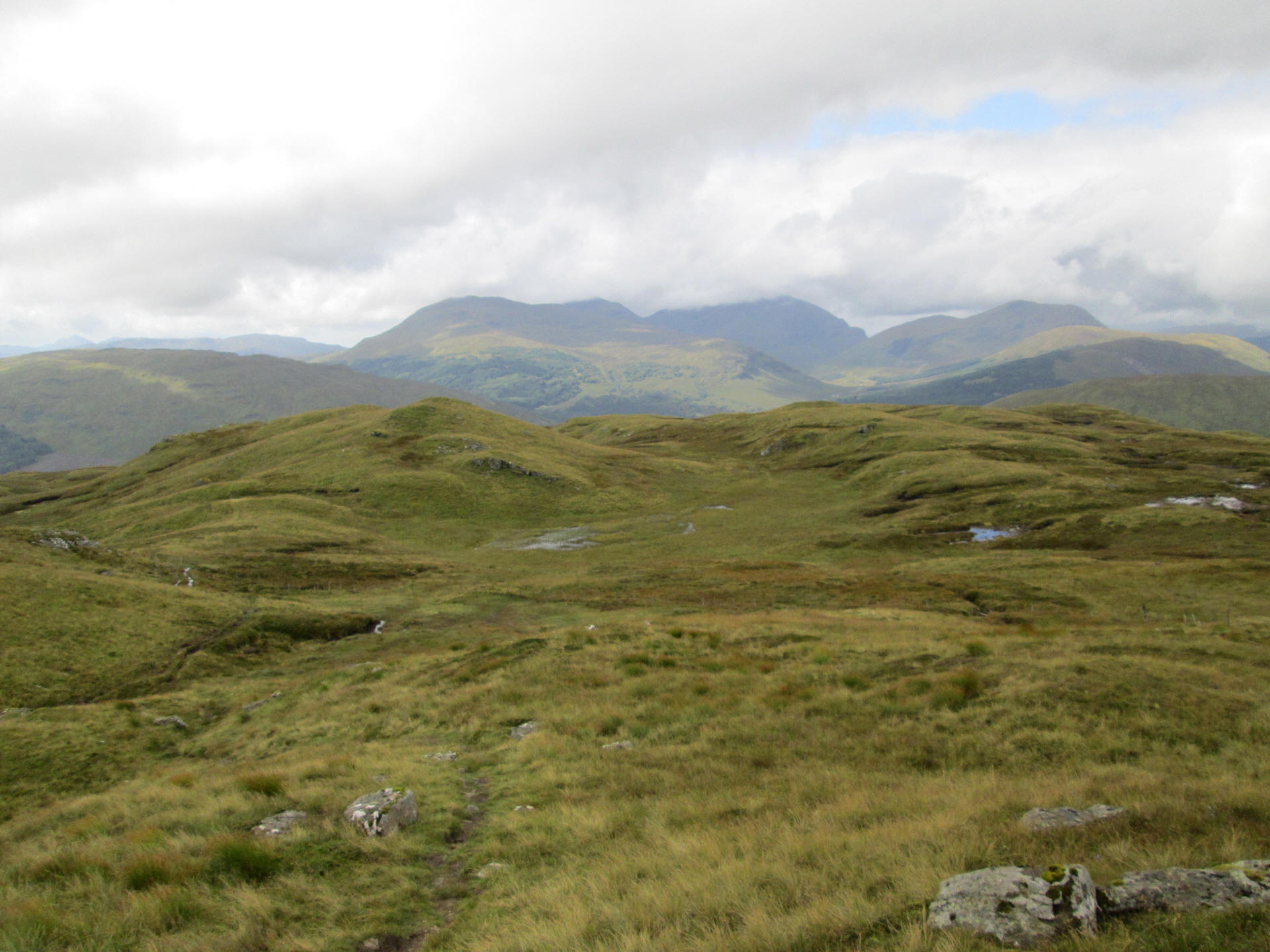 Looking back towards the Munroe of Beinn Dubhcraig, Ben Oss and Ben Lui (cloud covered) and the Corbett Beinn Chuirn. Click on photo to see a larger image.
