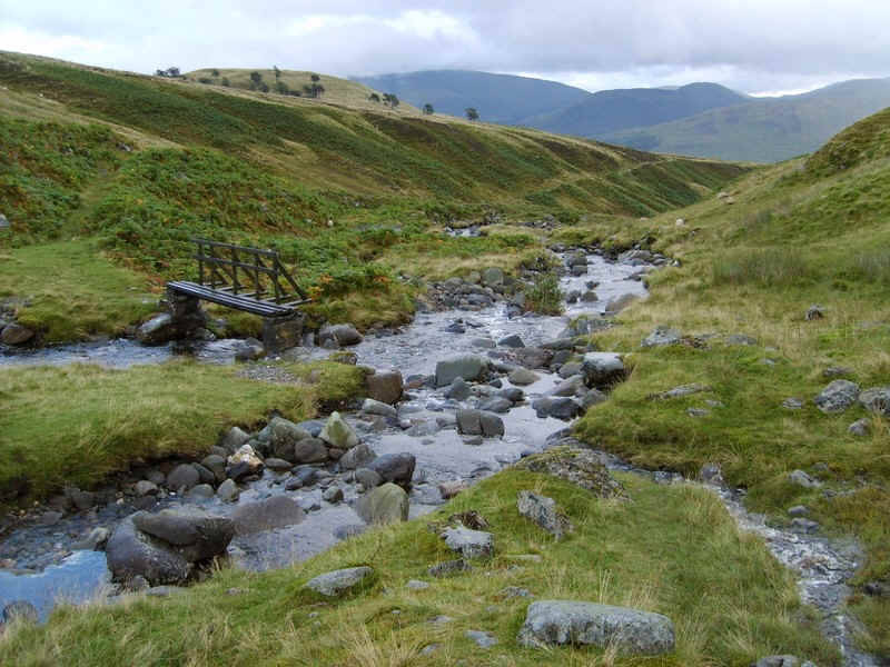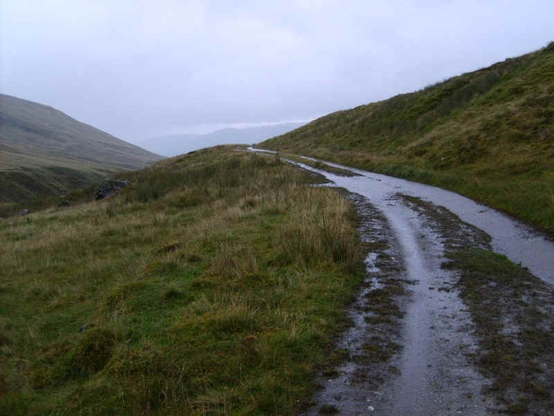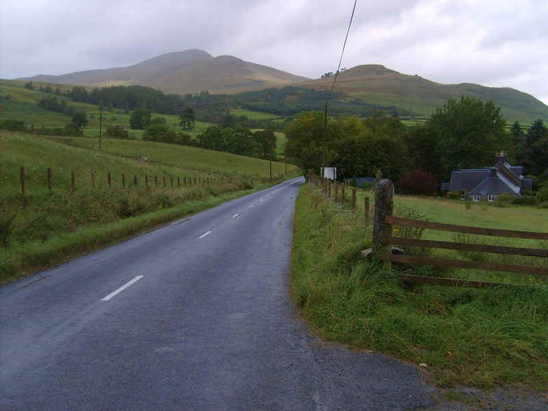 Leaving the hotel the first part of the walk goes along the Killin to Aberfeldy road for a short distance. At least the weather had improved slightly as I could see that the first Munro, Meall Greigh, was clear of early morning cloud.
