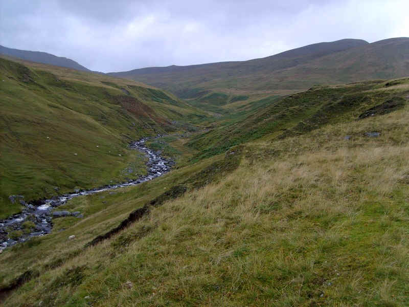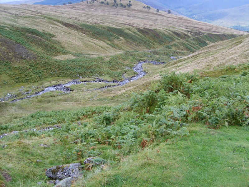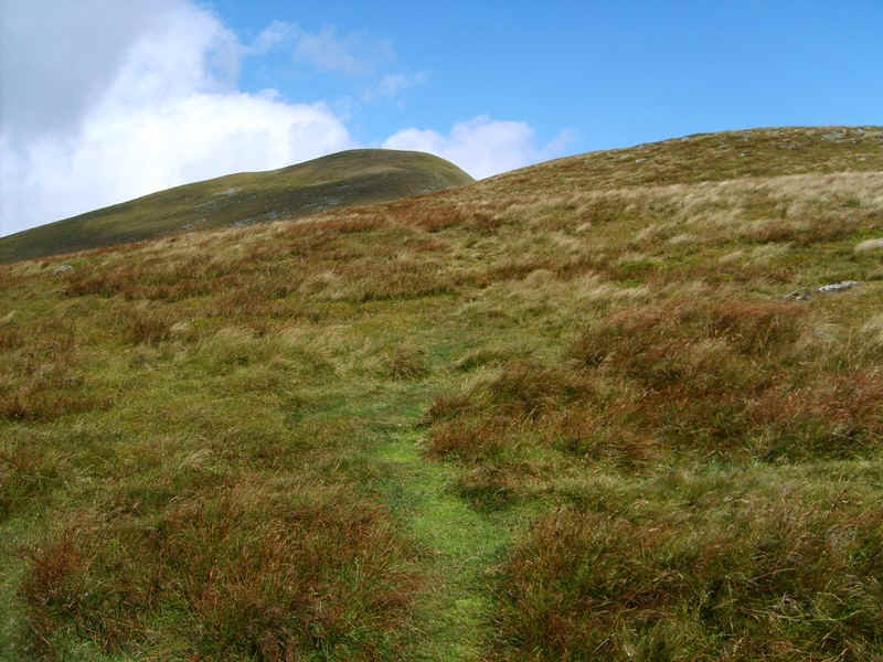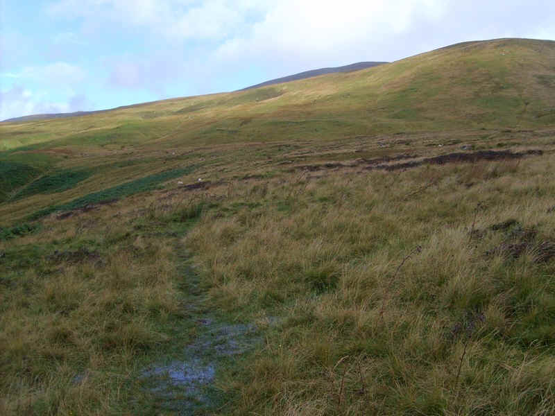 Once the path starts to drop down to the burn it is time to strike off across the hillside. There are odd traces of tracks, but the climb is basically pathless most of the way.