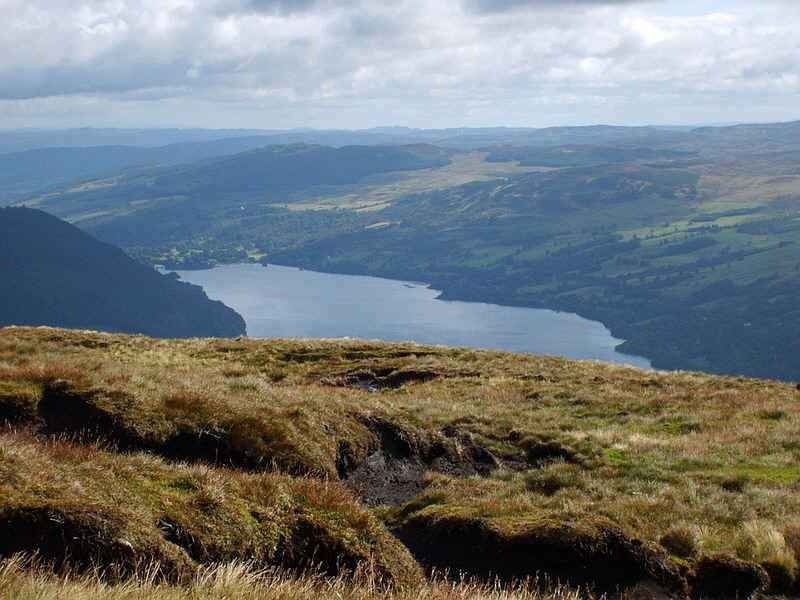 Near the summit the eastern end of Loch Tay comes into view. At this point in the walk the wind had increased to near gale force...