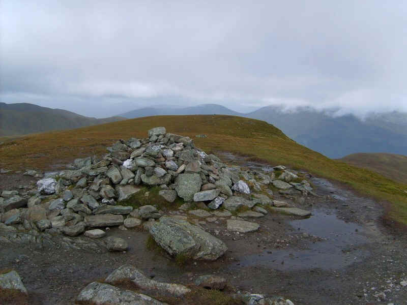 The tricky sections don't last very long and soon I was at the summit with Ben Lawers, clear of cloud, towering nearly another 100m higher.