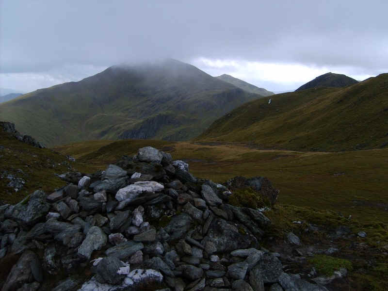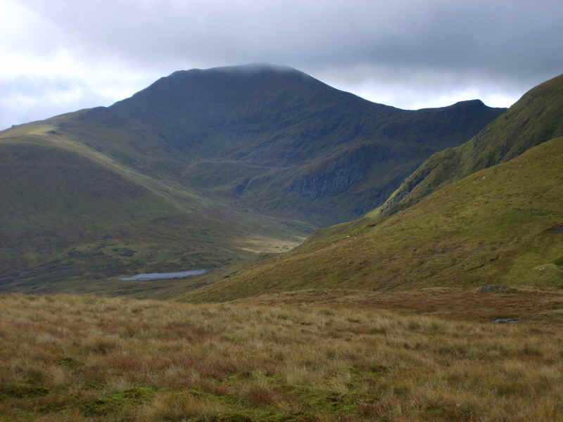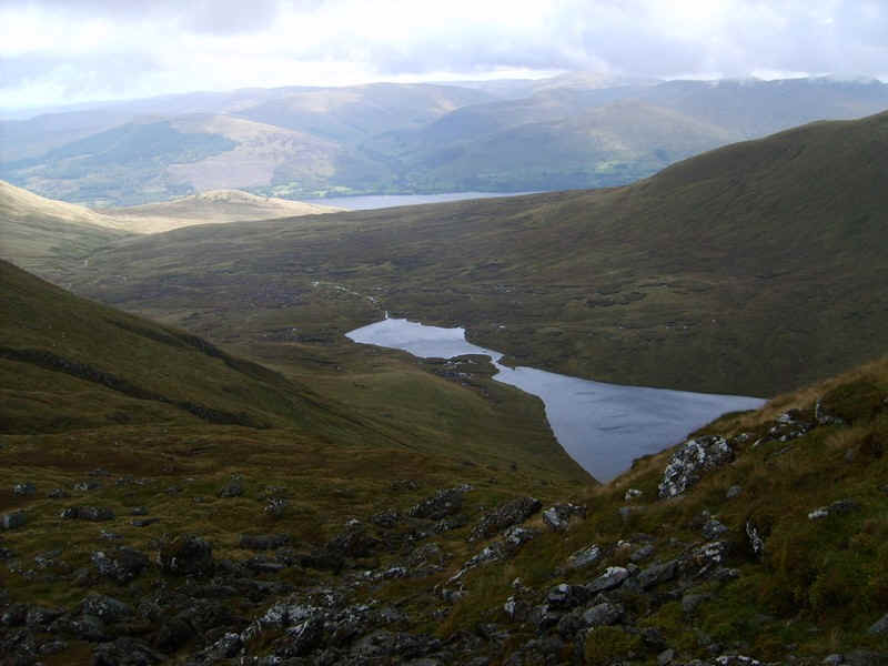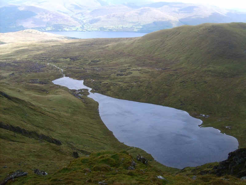 Ben Lawers only has a small cloud cap on it whilst here there is the first view of the "cat shaped" Lochan nan Cat.