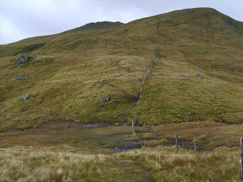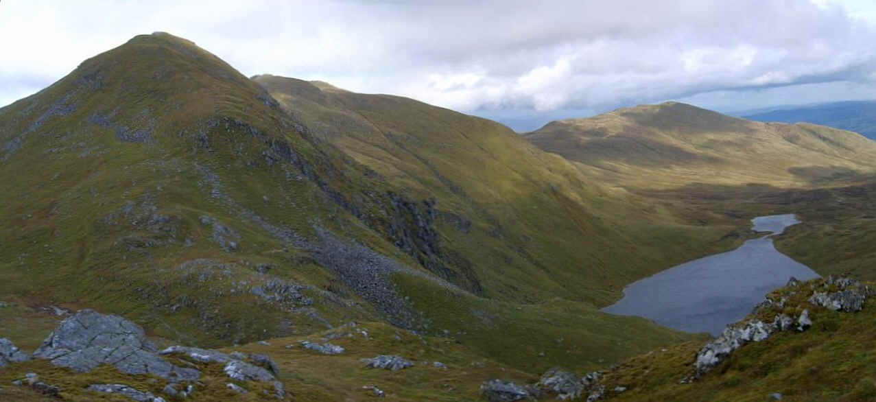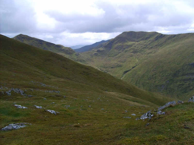 A glance back shows the south west ridge of Meall Garbh. Interestingly both Meall Garbh and An Stuc are exactly the same height of 1118m. There can't be many hills where this has occurred.
