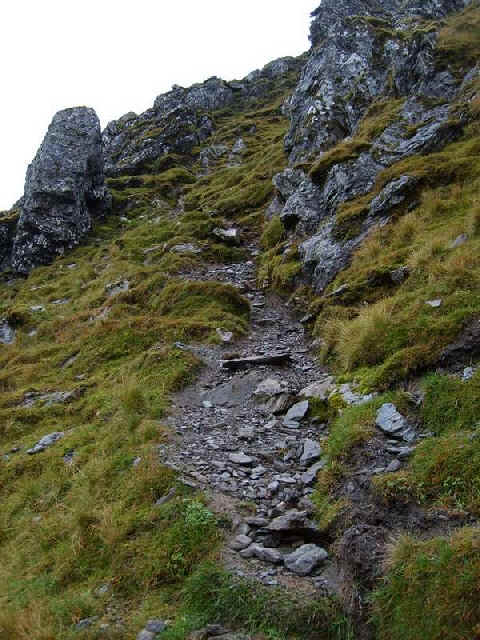 The wind was rather strong here but I managed to find a sheltered position for a quick snack and to prepare myself for the "horrors" of An Stuc. I was quite prepared to turn back if it proved too difficult. Looking at it from here, like many other walkers I thought, "Oh hell.....