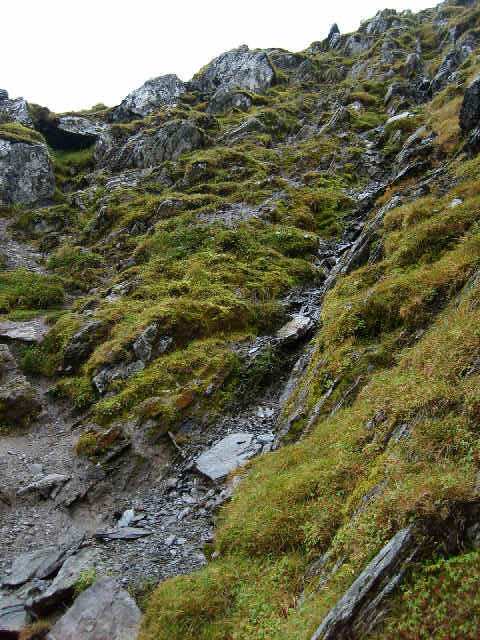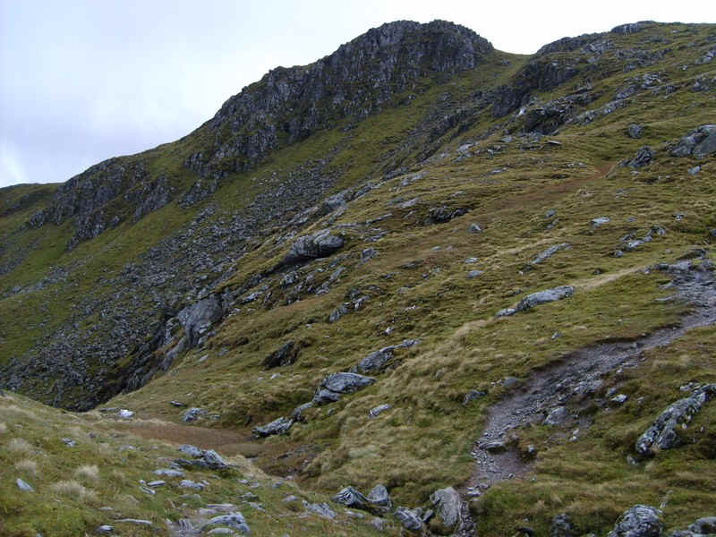 .....to the col where An Stuc's north east face towers above. However, there was a track clearly visible up the left hand side so onwards.