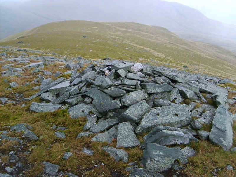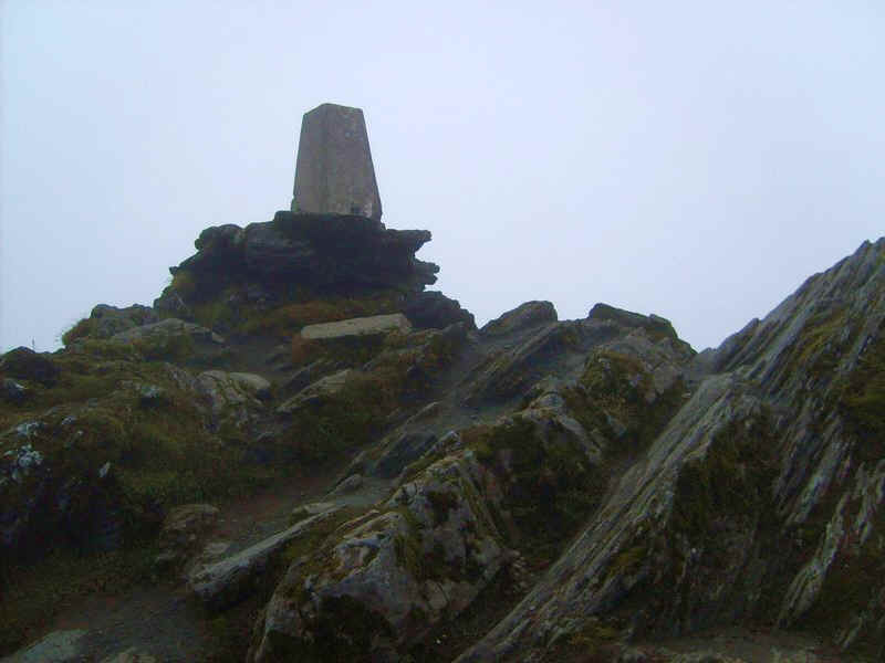 Ben Lawers not only has a cairn but also this rather precariously perched trig point.